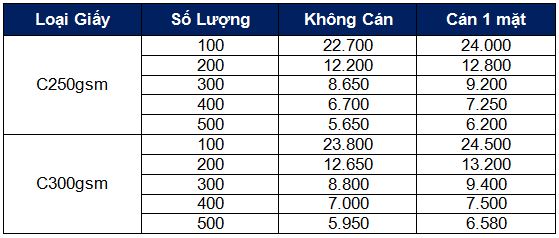 > Lưu ý: bảng giá trên chỉ là giá tham khảo, để nhận báo giá chính xác nhất vui lòng liên hệ:
