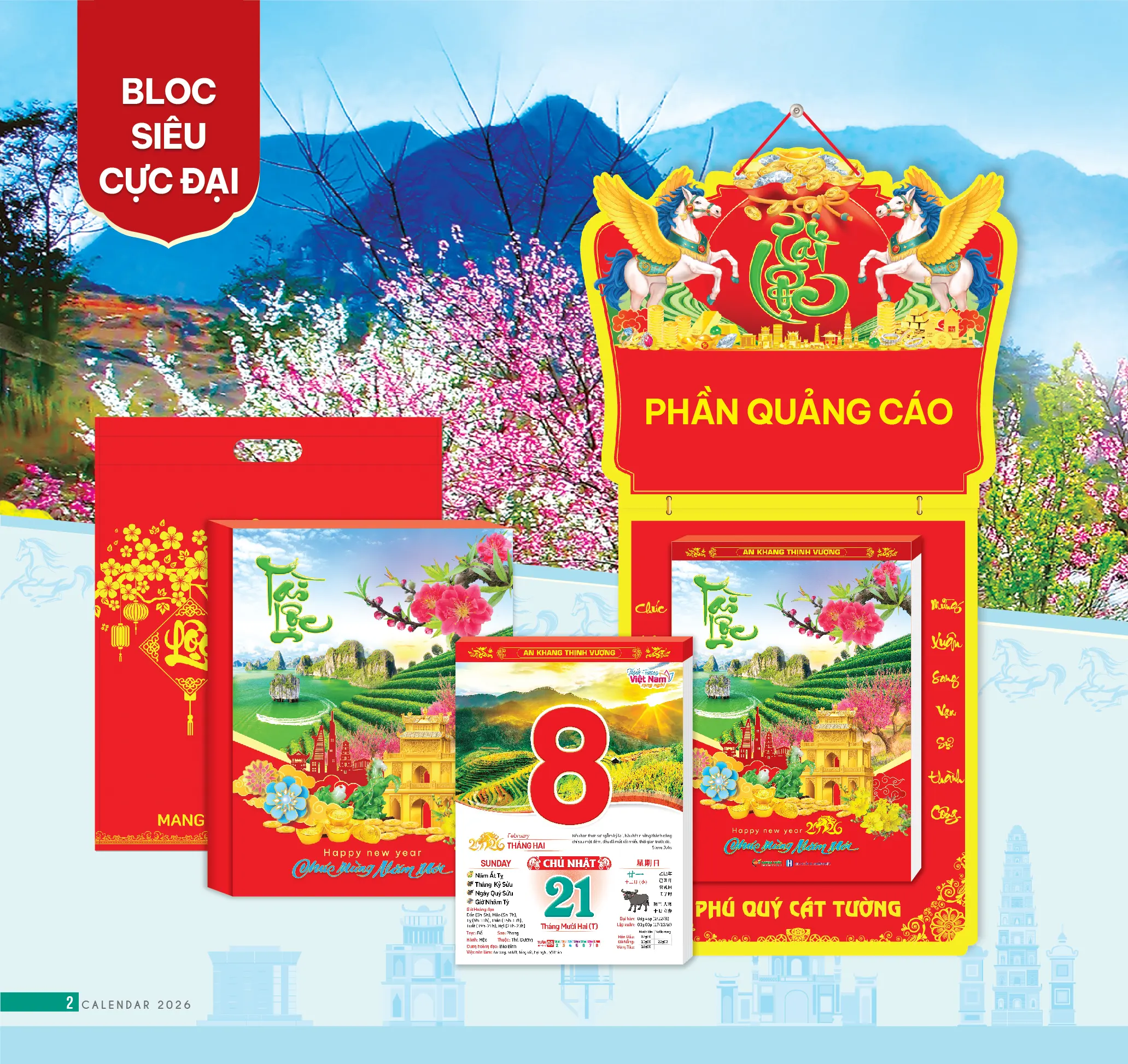 Lịch bloc 2026 mã MT – Mẫu lịch Tết sang trọng, hình ảnh đẹp